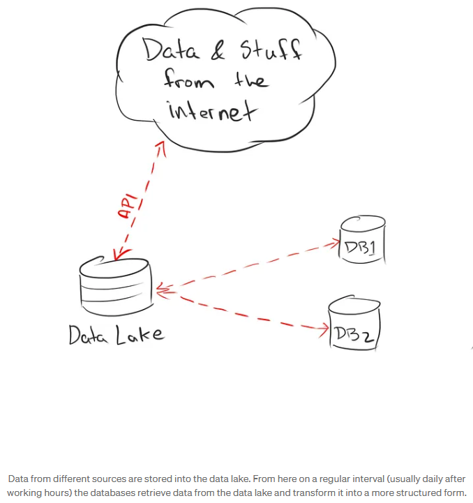 Let’s gain an understanding of what is happening within the overall data structure within your company. In general, there will be a lot of different types of data coming in and being stored within your companies “Data Lake”. Think of a data lake as where any and all information is just dumped into, there’s no real structure to it. The data lake will store data in the format it is received in. There can be payment information from Stripe or PayPal, there can be invoicing information from your billing system, or data fed by a mobile application. Data can also be put into a “Data Warehouse” where the data is more structured and formatted to meet specific user needs. If data lake is a large body of water filling up through streams and rain, then a data warehouse takes all water sources and bottles and arranges them by volume, purity and fluoride levels. I won’t go into the details of how data is structured in the data lake or data warehouse, but suffice to know that this is where the data comes from to build other reports and tables used by other members of the organization.